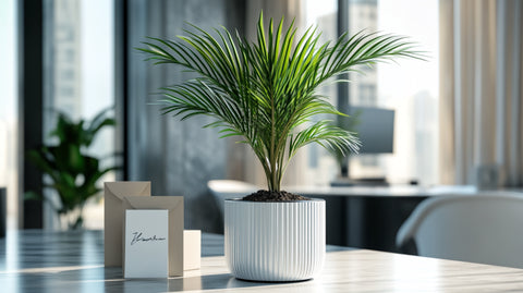 For instance, incorporating the recipient’s company logo on the pot of an Bamboo Palm is a beautiful way to keep your brand top-of-mind while making the gift feel uniquely suited to them. Such a tailored approach not only delights the recipient but also showcases your commitment to thoughtful business practices.